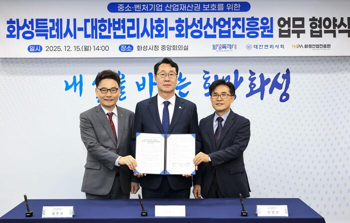 이날 협약은 관내 중소·벤처기업의 기술 보호와 기업 경쟁력 강화를 위해 마련된 것으로, 협약식에는 정명근 화성특례시장과 김두규 대한변리사회장, 전병선 화성산업진흥원장이 참석했다.