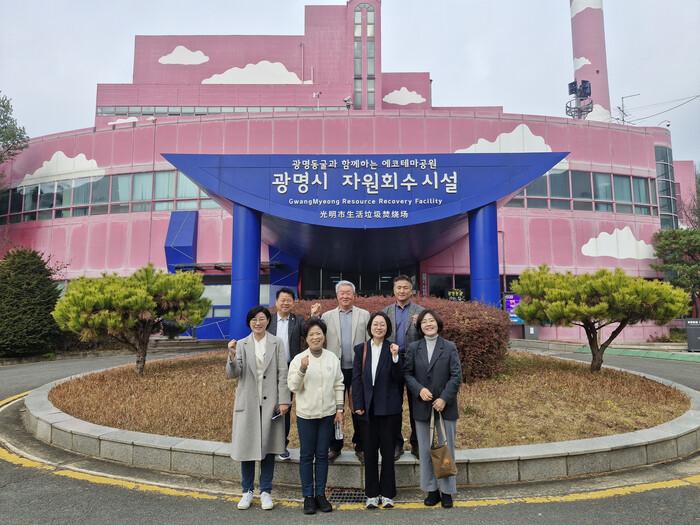 | ▲ 구로구의회 더불어민주당 의원들이 ‘광명시 자원회수시설’을 방문하고, 기념사진을 찍고 있다. (왼쪽 위에서부터 변정열 의원·김철수(더불어민주당) 부의장·김영곤 의원·김미주 의원·노경숙 의원· 양명희 대표의원·최태영 복지건설위원장). (사진=구로구의회 제공) |
