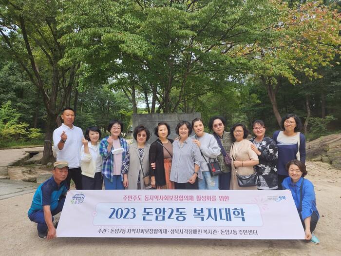 | ▲ 2023년 돈암2동 복지대학 참석자들이 기념촬영을 하고 있다. (사진=성북구청 제공) |