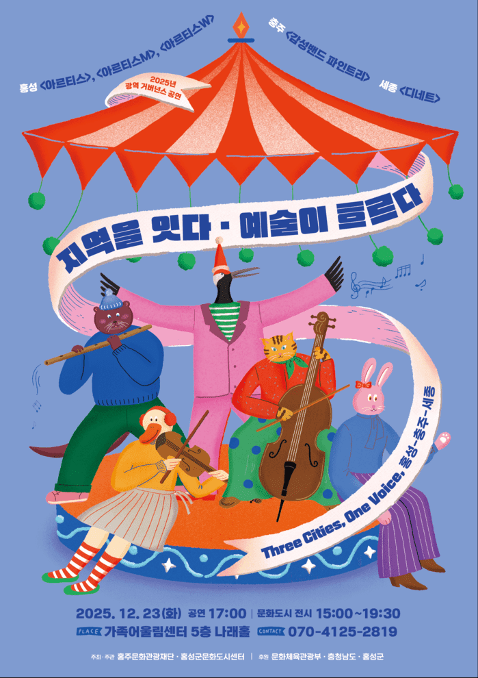 크리스마스 및 연말 시기에 맞춰 시민의 문화향유 기회를 확대하고, 충청권 거버넌스 간 협력과 교류를 강화하기 위해 마련된 이번 행사는 충청권인 홍성ㆍ충주ㆍ세종 각 지역의 전문예술단체가 참여해 공동으로 기획한 광역 연대 공연으로, 예술을 매개로 도시 간 연대와 협력의 과정을 무대 위에서 구현한 장르융합 공연이다.