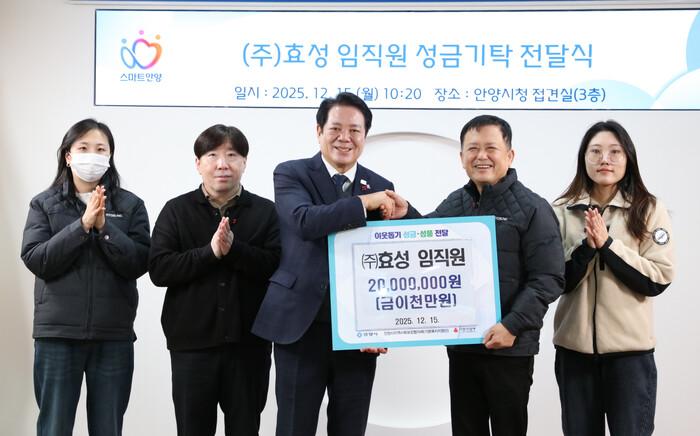 시는 15일 오전 10시20분 시청 접견실에서 최대호 안양시장, 최영화 (주)효성 안양공장 관리부장과 임직원 등이 참여한 가운데 기탁식을 개최했다고 16일 밝혔다.
