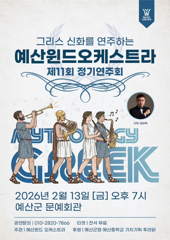 특히 이번 연주회는 그리스 신화라는 친숙한 이야기를 음악으로 재해석해 관객의 상상력을 자극할 예정으로, 현악기 없이도 강렬한 에너지와 섬세한 표현을 동시에 담아내는 관악합주의 매력을 느낄 수 있는 무대가 될 것으로 기대를 모은다.