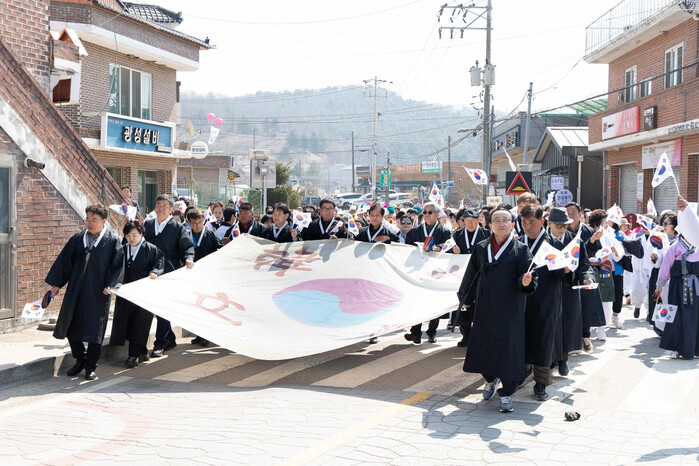특히 이날 기념식에서는 항일독립운동기념탑에서 백학광장까지 태극기 퍼레이드가 진행돼 주민들과 학생들이 함께 태극기를 들고 행진하며 나라 사랑의 의미를 더욱 깊이 새겼다.