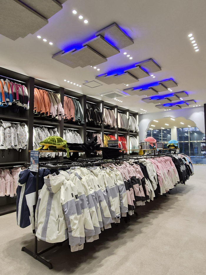 시설 측면에서는 약 200평 규모의 대형 매장에 백화점 수준의 인테리어를 적용하고, 넓은 탈의실과 가족 단위 고객을 위한 패밀리룸을 마련해 이용 편의성을 높였다. 매장은 용평리조트 IC 인근에 위치해 접근성도 우수하다.