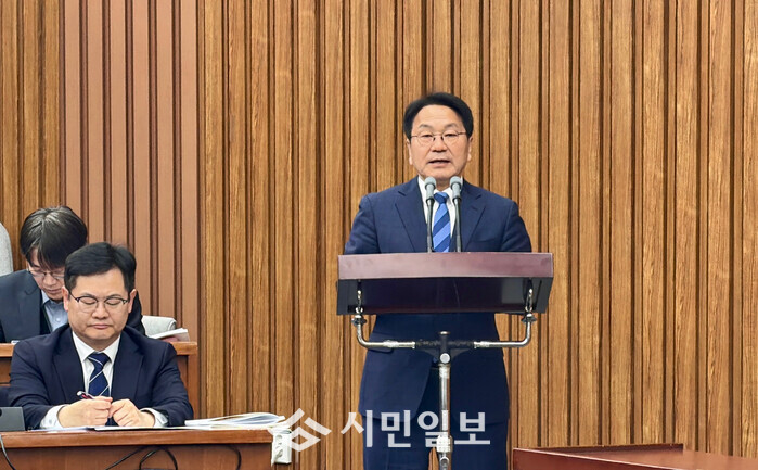 | ▲ 강기정 광주광역시장이 9일 오전 국회의사당 본관에서 열린 '국회 행정안전위원회 행정구역 통합 관련 제정법률안 입법공청회'에 참석해 중앙부처의 핵심 특례 부동의에 대한 우려를 표하고, 지방주도 성장을 위한 재정·권한 특례 반영의 필요성을 강조하고 있다. /광주광역시 제공 |