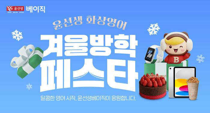 [시민일보 = 여영준 기자] 영어교육 전문기업 윤선생은 겨울방학을 앞두고 화상영어 브랜드 ‘윤선생베이직’의 신규 회원 가입 프로모션 ‘겨울방학 페스타’를 진행한다고 3일 밝혔다.