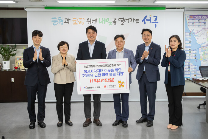 [인천=문찬식 기자] 인천 서구가 지난 27일 인천사회복지공동모금회와 함께 ‘2026년 민관협력 돌봄 지원’ 전달식을 진행했다.