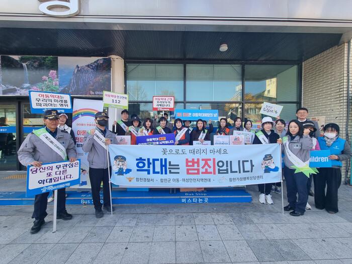 이날 캠페인은 경남서부아동보호전문기관의 주관으로, 합천군청, 합천교육지원청, 합천경찰서, 드림스타트, 아동위원협의회 등 여러 유관기관 합동으로 이루어졌으며, 군민들에게 아동학대 예방의 중요성과 생명존중 문화를 확산하기 위해 아동학대 예방 홍보물품을 나눠주며 가두행진을 진행했다.