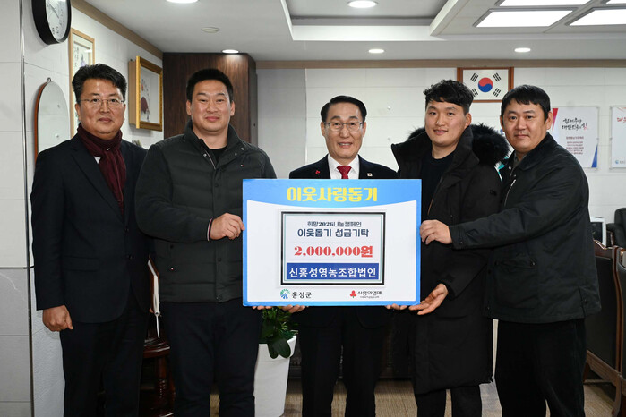 신홍성영농조합법인은 지난 23일 홍성군에 드론 방제단 수익금을 활용한 이웃 사랑 성금 200만원을 기탁했다.