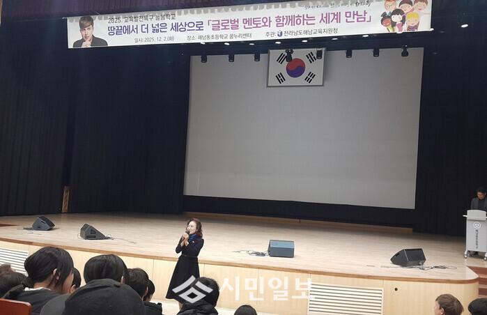 | ▲ 해남교육지원청, 2일 해남동초등학교꿈누리센터에서 2025년 교육발전특구 ‘글로벌 멘토와 함께 하는 세계 만남’프로그램 운영 자료사진 / 해남교육지원청 제공 |