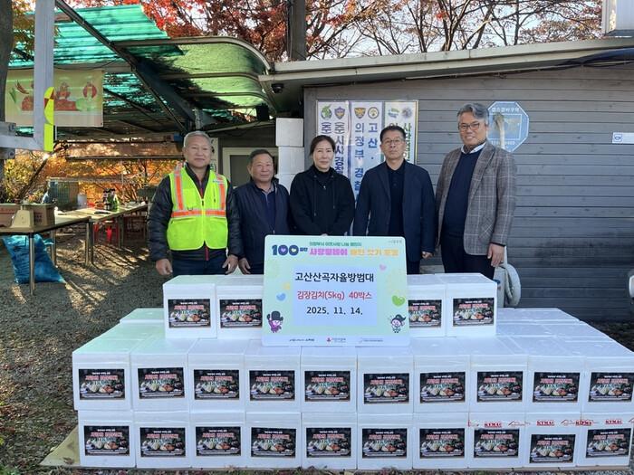 고산산곡자율방범대는 지역 안전을 책임지는 봉사단체로서 매년 ‘100일간 사랑릴레이 배턴 잇기’에 참여하고 있으며, 지난 2024년에도 김장김치 70상자를 후원한 데 이어 지속적으로 이웃사랑 실천에 앞장서고 있다.