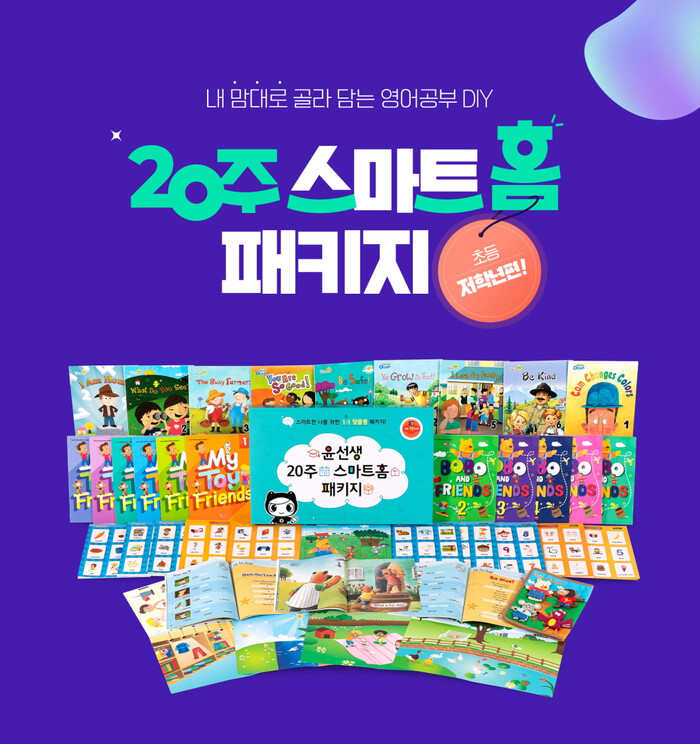 윤선생에 따르면 이번 이벤트가 적용되는 ‘20주 스마트홈 패키지’는 윤선생이 보유한 1200여 권의 영역별 교재 중 자녀의 수준과 목표에 꼭 필요한 교재만 선별해 구성할 수 있는 맞춤형 DIY 영어학습 상품이다.