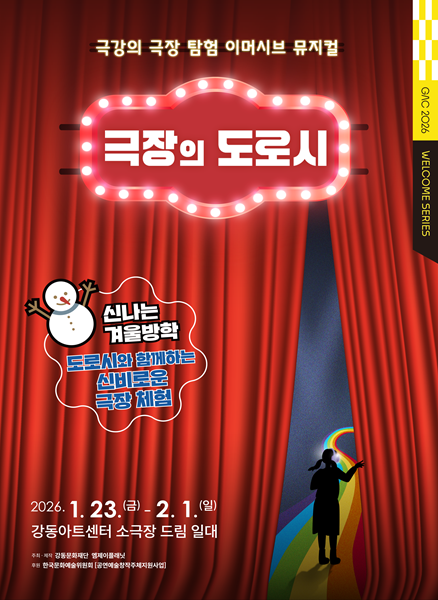 〈극장의 도로시〉는 강동문화재단이 지역민의 공연예술 입문을 돕는 강동아트센터 대표 기획공연 시리즈 ‘웰컴 시리즈’ 프로그램 중 하나로, 2025년 ‘한국문화예술위원회 공연예술 창작주체 지원사업’에 선정된 엠제이플레닛과 공동 제작한 신규 작품이다. ‘웰컴 시리즈’는 클래식 마티네, 키즈 클래식, 평일 저녁 온 가족이 편안하게 즐길 수 있는 공연 등으로 구성되며, 지난해 총 24회 공연이 예매 오픈 후 단시간 내 매진되는 등 큰 호응을 얻었다. 재단은 앞으로도 ‘웰컴 시리즈’를 통해 지역 주민들의 공연예술 향유 기회를 지속적으로 확대해 나갈 계획이다.