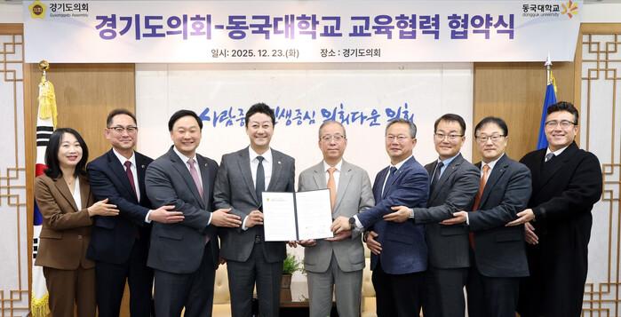 [수원=채종수 기자] 경기도의회가 최근 의장 접견실에서 동국대학교와 교육협력 및 학술교류를 위한 업무협약(MOU)을 체결했다.