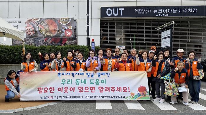 이날 캠페인은 지역 내 도움이 필요한 위기가구를 조기에 발견하고 지원하기 위한 취지로 마련된 것으로, 유동인구가 많은 괴정시장과 뉴코아아웃렛 일대에서 복지사각지대 발굴 안내문 및 홍보물품을 배부하며 홍보활동을 펼쳤다.