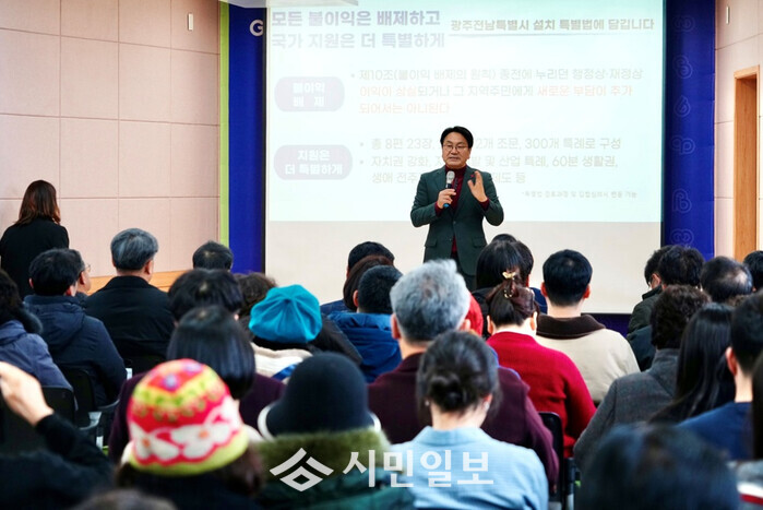 이상배 기후환경국장은 “통합하면 우리가 꿈꿨던 지속가능한 환경친화 생태도시를 실현할 수 있다”며 특별법에 담긴 환경 관련 20여개 특례 등을 설명했다.