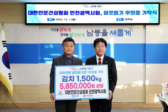 [인천=문찬식 기자] 인천 남동구는 대한전문건설협회 인천광역시회에서 취약계층을 위한 김장 김치 1500kg을 기탁했다고 4일 밝혔다.