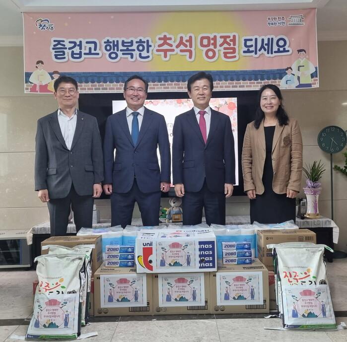 한편, 진주시는 매년 설, 추석 명절과 연말에 사회복지시설과 저소득층을 대상으로 위문품을 전달하여 따뜻한 관심이 필요한 이웃들을 격려해오고 있다.
