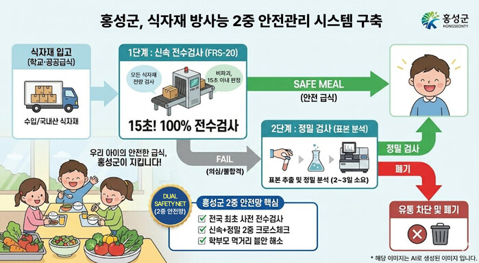 이번 장비 도입으로 홍성군은 기존에 수행하던 정밀 방사능 검사 체계에 더해 식자재 유통 및 공급 단계에서 신속하게 방사능 오염 여부를 확인할 수 있는 현장 검사체계를 추가로 구축하게 되었다. 이를 통해 학교급식과 공공급식 식자재에 대해 이중 방사능 검사체계를 운영하게 된다.