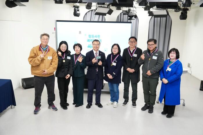 | ▲ 면목미디어센터의 ‘활동사진 제작단’ 2기 수료식에 참석한 류경기 중랑구청장과 구민들의 모습. (사진=중랑구청 제공) |
