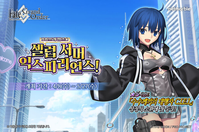 [시민일보 = 여영준 기자] 넷마블은 모바일 RPG <페이트 ·그랜드 오더>에서 ‘BB 프레젠츠☆셀럽 서머 익스피리언스’ 이벤트를 실시한다고 8일 밝혔다.
