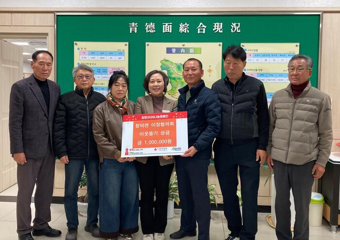 청덕면 이장협의회는 매년 이웃돕기 성금을 기탁하며 꾸준한 나눔을 실천하고, 청덕면 지역사회를 발전하기 위한 봉사정신을 실천하고 있다. 기탁받은 성금은 청덕면 관내 어려운 이웃에 지원될 예정이다.