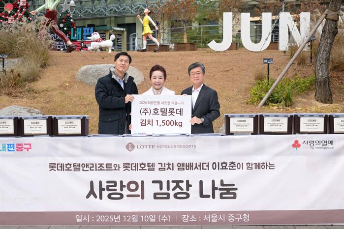 [시민일보 = 여영준 기자] 서울 중구(구청장 김길성)가 최근 ‘2026 희망온돌 따뜻한 겨울나기’의 일환으로 롯데호텔앤리조트가 후원한 ‘김치 앰배서더 이효춘과 함께하는 사랑의 김장 나눔 행사’를 열었다.