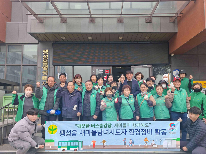 [평택=오왕석 기자] 평택시 팽성읍 새마을남녀지도자(지도자협의회장 강형병, 부녀회장 박성애)는 지난 12일 새봄을 맞아 쾌적하고 깨끗한 대중교통 환경 조성을 위해 팽성읍 관내 버스 승강장에서 환경정화 활동과 일제 대청소를 진행했다.