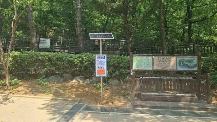 | ▲ 매봉산 잣절공원에 신규 설치된 친환경 해충기피제. (사진제공=구로구청) |