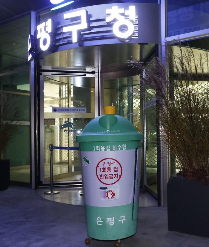 | ▲ 은평구청 본관에 설치된 1회용컵 회수함. (사진제공=은평구청) |