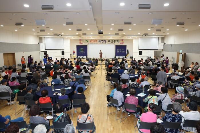 행사는 관내 여성퍼포먼스그룹의 난타공연을 시작으로 김미경 구청장과 내빈 축사, 작년도 주민총회 결과 발표, 올해 주민자치회 활동 사업 및 2024년 추진사업 계획 의제 발표 및 현장 투표 순으로 진행됐다.
