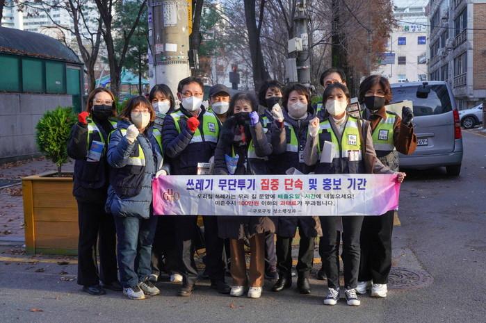 한편 구는 동주민센터를 방문하는 구민들을 대상으로 홍보물을 배부하고 있고, 통반장 회의 등 동별 유관기관 회의, 동마다 구성된 깔끔이 봉사단 등의 모임 단체를 활용해 쓰레기 무단 투기 집중 단속 및 홍보 등의 내용이 담긴 안내문을 전달하고 있다.