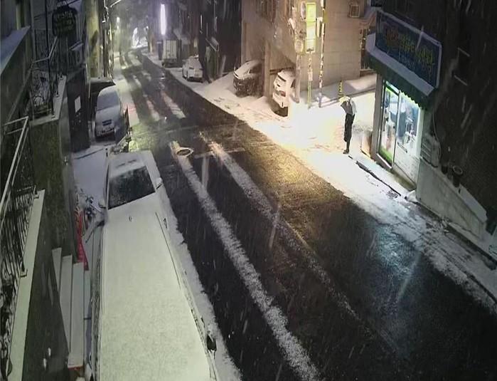 | ▲ 도로 열선으로 인해 쌓인 눈이 녹고 있는 모습. (사진제공=관악구청) |