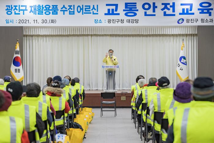 [시민일보 = 여영준 기자] 서울 광진구(구청장 김선갑)는 최근 구청 대강당에서 지역내 재활용품 수집 노인을 대상으로 ‘2021 동절기 대비 교통안전교육’을 실시했다고 1일 밝혔다.