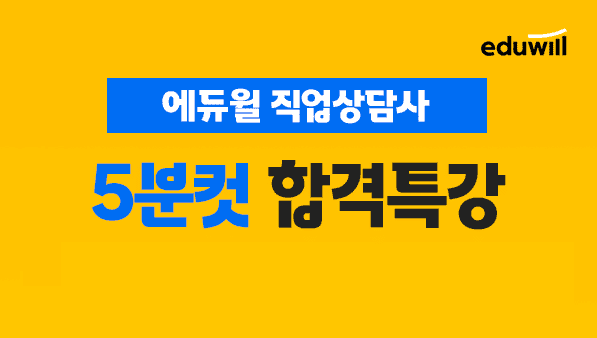 이에 에듀윌은 직업상담사 취득을 희망하는 수험생의 학습을 지원하기 위해 ‘5분컷 합격특강’을 무료로 제공한다.