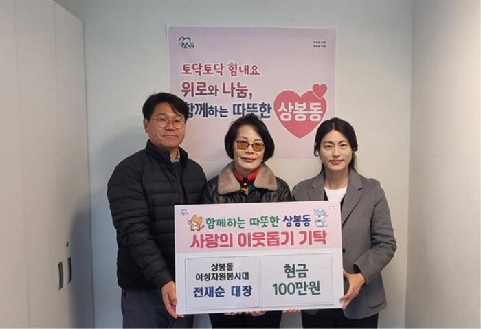 진주시 상봉동행정복지센터는 8일, 전재순 상봉동 여성자원봉사대장이 연말을 맞아 관내 어려운 이웃들을 위해 현금 100만 원을 기탁했다고 밝혔다.