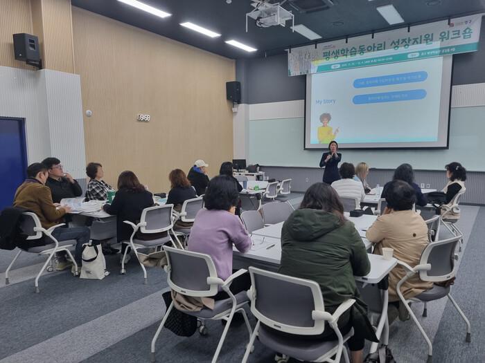 올해 처음으로 실시되는 이번 워크숍은 평생학습동아리 활성화 사업 중 하나로, 학습활동에 필요한 관련 역량을 강화하는 등 학습동아리의 내실을 다지고자 마련된 프로그램이다. 10개 학습동아리 총 20여 명이 참석했다.