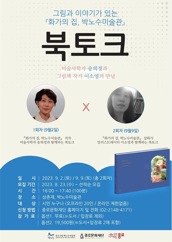 북토크는 상촌재에서 오후 4시부터 5시까지 이뤄진다. 북토크 이후에는 전문해설사와 박노수미술관 개관 10주년 기획전시 ‘화필인생-박노수의 모던 타임즈’展을 관람하는 시간을 보낸다.