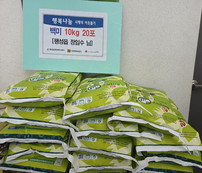 한편, 이날 전달된 백미는 팽성읍 관내 저소득층 가정에 전달되어 풍성하고 따뜻한 설 명절을 보낼 수 있도록 지원될 예정이다.
