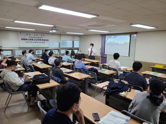 | ▲ 지난해 '마을버스 운행 신규인력 양성과정'에 참가한 참여자들이 교육을 받고 있는 모습. (사진제공=구로구청) |
