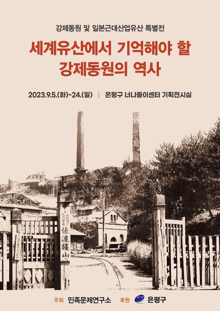 전시명은 ‘또 다른 강제동원의 현장, 사도광산·세계유산에서 기억해야 할 강제동원의 역사’다. 무료 대중 전시를 통해 은평구민과 학생들에게 지역의 자부심과 독립운동, 평화 정신을 고취하고자 마련됐다.