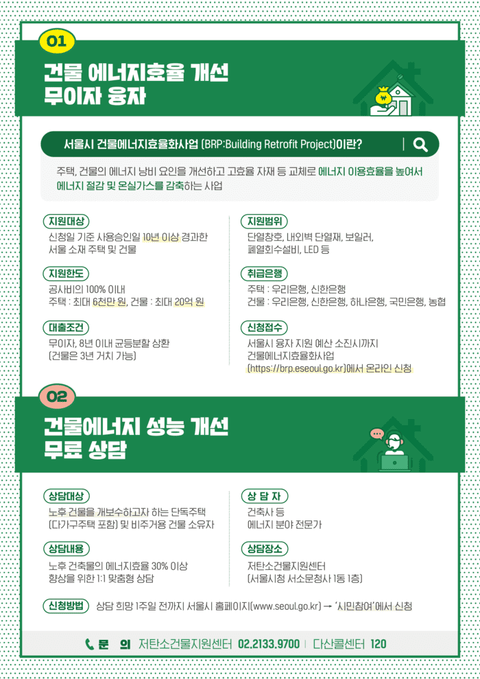 융자 지원 뿐만 아니라 건축사 등 에너지 분야 전문가가 노후 단독주택과 비주거용 건물을 대상으로 1대1 맞춤형 상담도 제공하고 있다.