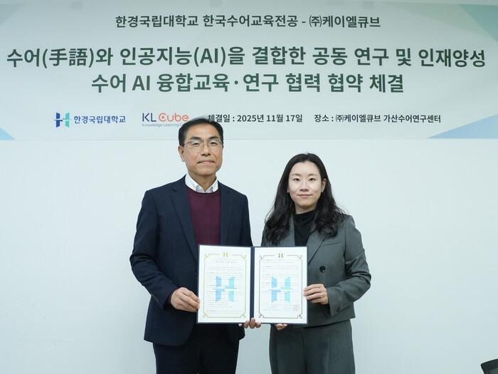 김종화 케이엘큐브 대표는 “AI 기술이 수어 교육과 통역 현장에 실질적으로 기여할 수 있도록 대학과의 긴밀한 협력을 확대해 나가겠다”고 전했다.