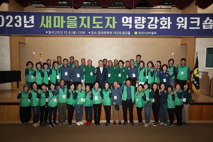 [밀양=최성일 기자] 밀양시새마을회는 지난 6일 밀양문화원 강당에서 새마을지도자 80여명이 참석한 가운데 건강한 공동체 문화조성과 핵심 지도자의 소통과 공감의 리더십 고취를 위한 ‘2023년 우수 새마을지도자 워크숍’을 개최했다.