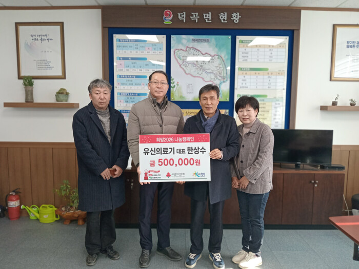 덕곡면 율지마을 출신으로 배우자와 함께 디자인파크와 유신의료기를 운영하고 있는 한상수 대표는 매년 경로잔치나 지역의 크고 작은 행사 등에 꾸준한 기부를 이어오고 있다.