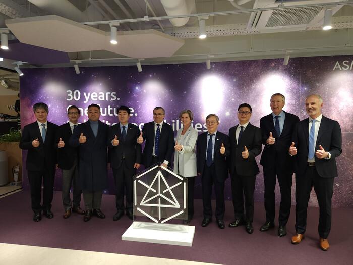 | ▲ 조승문 화성특례시 제2부시장이 히쳄 엠사드 ASM CEO, 이영석 ASM 코리아 대표 등 주요 내빈들과 기념촬영을 하고 있다 /사진제공=화성특례시 |
