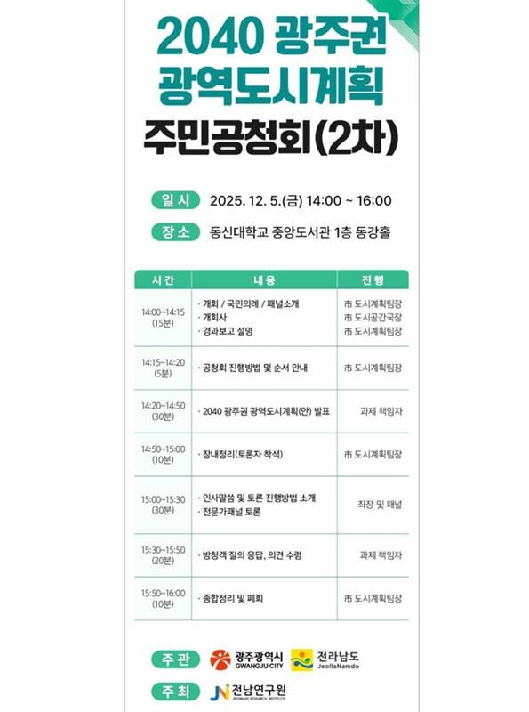 | ▲ 2040 광주권 광역 도시계획 주민 공청회 안내 포스터 / 광주광역시 제공 |