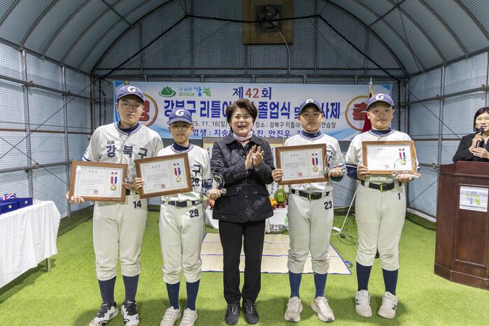 김명희 의장은 “강북구 리틀야구단은 어려운 환경 속에서도 묵묵히 실력을 갈고닦아 전국대회에서 좋은 성과를 거둔, 우리 지역의 진정한 ‘외인구단’이자 꿈의 구단”이라며 “오늘 졸업하는 네 명의 선수들이 보여준 열정과 땀은 후배들에게도 큰 영감이 될 것이며, 앞으로 더 넓은 무대에서 당당히 성장하길 기대한다”고 축하의 뜻을 전했다.