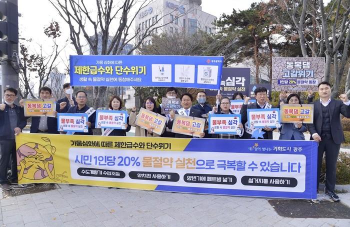 이날 캠페인은 시청 앞 사거리, 송정역, 유·스퀘어, 백운광장 등 교통량과 유동인구가 많은 주요 거점 20곳서 진행됐으며 광주 시민의 식수원인 동복댐이 가뭄으로 고갈될 위기상황이라는 점을 알리고 ‘생활 속 20% 물 절약’ 실천 방법을 홍보했다.