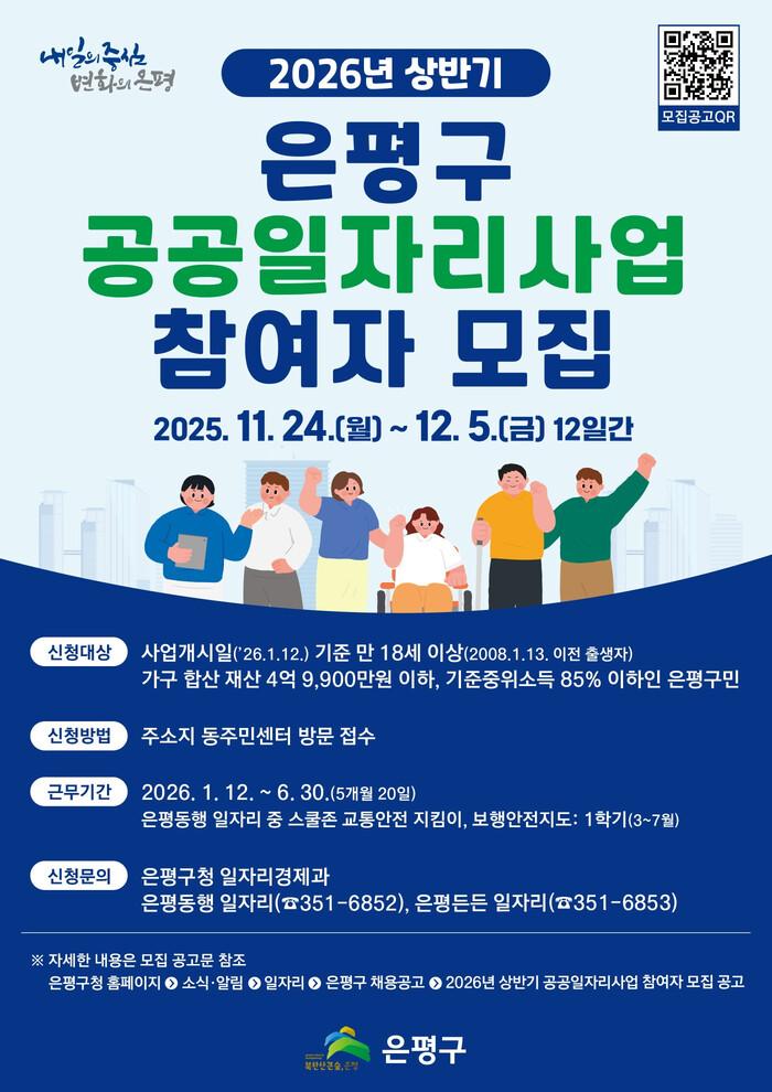 자세한 내용은 은평구청 누리집 채용공고를 통해 확인하거나 은평구청 일자리경제과 전화(02-351-6852~3)로 문의하면 된다.